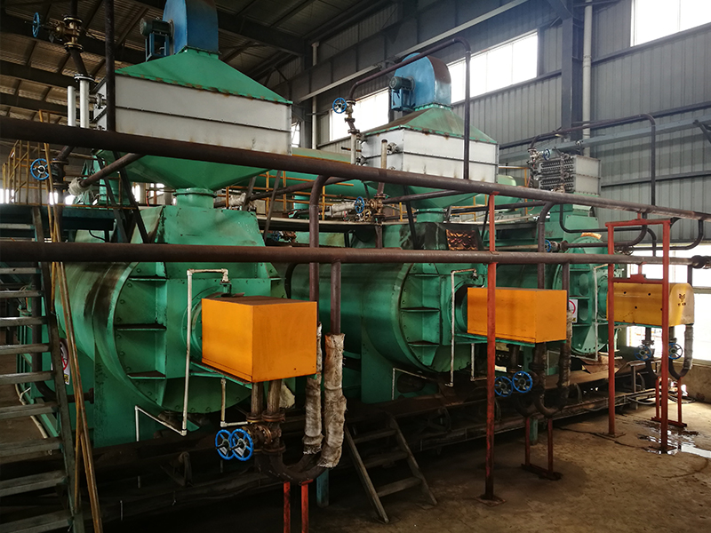 在干化過程中,熱蒸汽冷凝在轉盤腔的內壁上,形成冷凝水。冷凝水通過一個管子被導入中心管,^終通過導出槽導出干燥機。在每兩片轉盤之間裝有刮刀,刮刀固定在外殼(定子)上。刮刀可以疏松盤片間的污泥,使廢蒸汽快速離開污泥。干燥機的傳熱介質一般是0.2Mpa~0.6Mpa的飽和蒸汽。圓盤干燥機每片轉盤由兩個對扣的圓盤焊接而成。中心軸內腔與所有轉盤內腔相連通。為了提高轉盤的堅固性,空心轉盤內腔分部著許多支撐桿,支撐桿兩端支撐著左右兩個圓盤。根據(jù)所干化物料性質的不同,轉盤可以采用低碳鋼,不銹鋼,或特殊合金鋼制造。在轉盤邊緣裝有推進/攪拌器,它們有兩個功能:一是推進輸送物料,二是攪拌混合物料。推進器的傾角是可以調整的,轉盤的內腔可以通入中低壓蒸汽,導熱油或高壓熱水傳遞干化產品所需熱量。